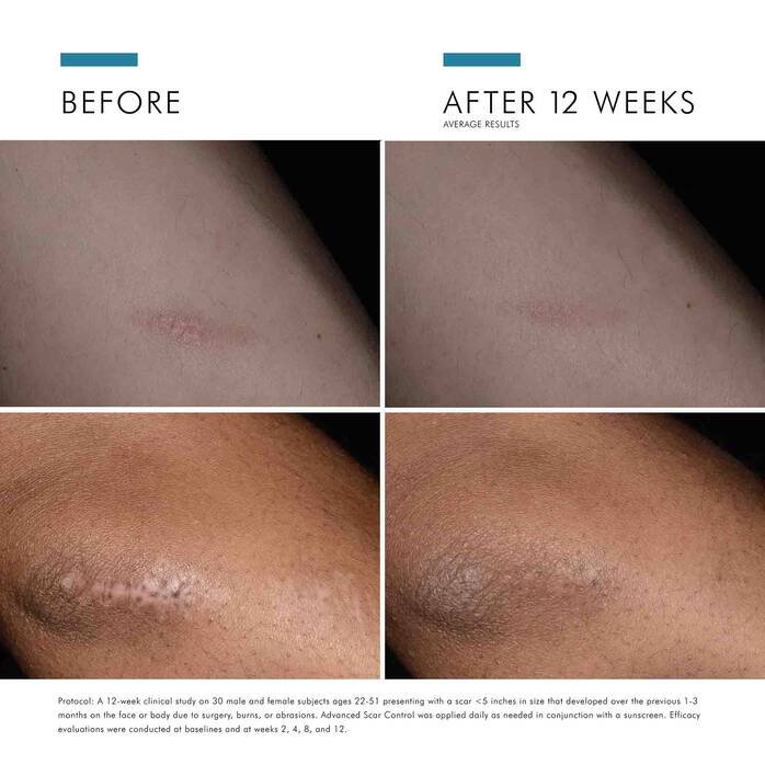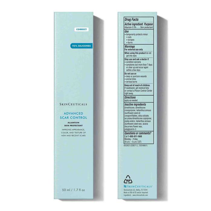 Advanced Scar Control is a high-silicone scar gel that creates an occlusive barrier to help prevent new scar formation and improve the tone and texture of existing scars. Ideal for incisions associated with surgical procedures, as well as scars caused by wounds such as burns, scrapes, and cuts, this breakthrough treatment for scars features 95% silicones, 0.5% allantoin, 2% fatty acids, and 1% ultralight silica to protect and soothe post-procedure skin. With an elegant, invisible texture, this protective scar treatment creates an ideal environment that helps prevents new scar formation and improves the appearance of recent scars by up to 29%.