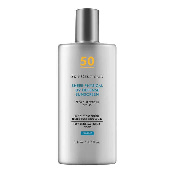 Sheer Physical UV Defense SPF 50 is an ultra-sheer 100% mineral sunscreen fluid that is formulated with titanium dioxide, a broad-spectrum mineral filter, and artemia salina, a plankton extract to help boost the skin’s natural defenses to UV- and heat-induced stress. As one of the best physical sunscreens for face, this sheer sunscreen offers daily broad-spectrum protection for all skin types, including sensitive. This silky sheer fluid spreads easily and dries quickly, leaving no residue. Dermatologist-tested for safety.